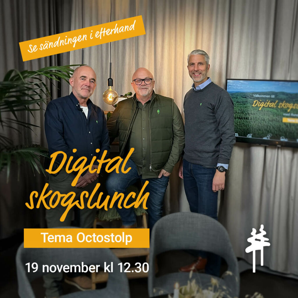 Vår vd Fredrik Granath leder som vanligt samtalet tillsammans med Kalle Holmberg och Håkan Semb – två av våra experter på Octostolp. Vi bjuder på film från industrin och skogen, och pratar uttag och framtidens möjligheter.