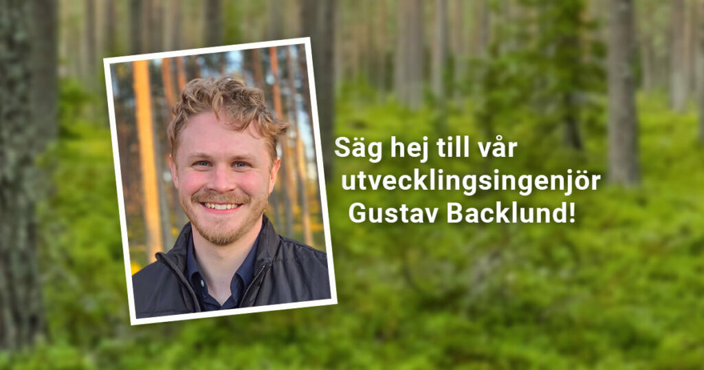 Fastän Gustav Backlund med sina 25 år är ”yngsten” på vårt kontor i Falun, är han så fullproppad av kunskap att man blir helt imponerad. Han besitter en ganska unik kombination där han förenar teoretisk skärpa med praktiskt handlag, och möter andra på ett rakt och ödmjukt sätt. Han kör skogsmaskin och sköter en egen såg där hemma, och samtidigt klurar han ut det mesta i våra digitala system och våra tekniska utmaningar. Med andra ord – titeln som utvecklingsingenjör inom virke och kvalitet här på Rundvirke Skog är som klippt och skuren.